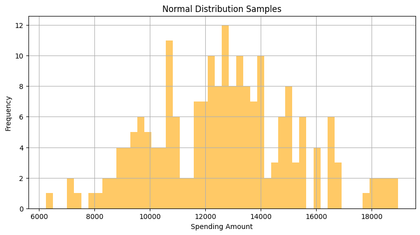 spendings = np.random.normal(12500, 2500, n_customers) # 平均支出額
