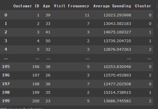 features = data[['Age', 'Visit Frequency', 'Average Spending']]