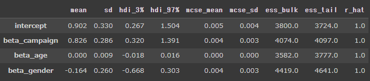 lambda_ = pm.math.exp(intercept + beta_campaign * df['campaign'] + beta_age * df['age'] + beta_gender * df['gender'])