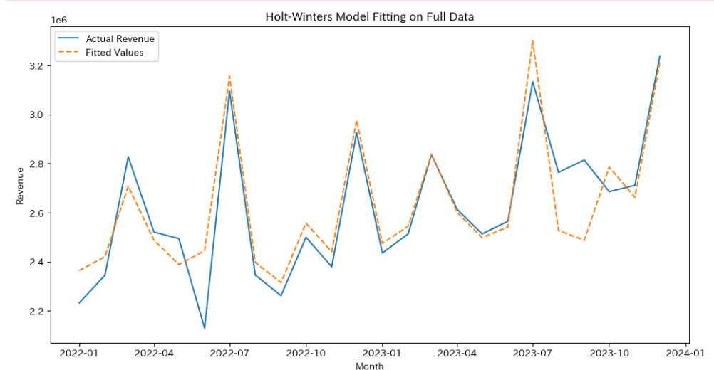 今回のホルトウィンターズ法が最善というわけではないと思いますので、実務ではもっといろいろ試してみる必要があります。